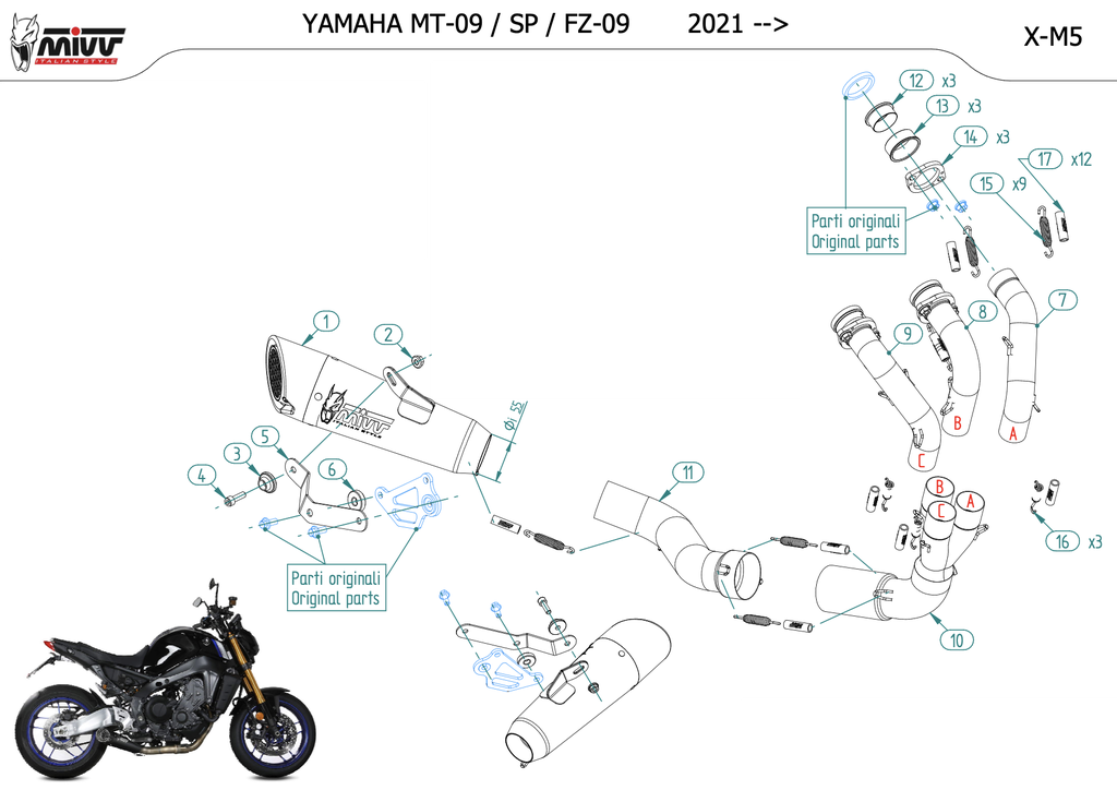 для мотоцикла Yamaha MT09 2021 - 2023